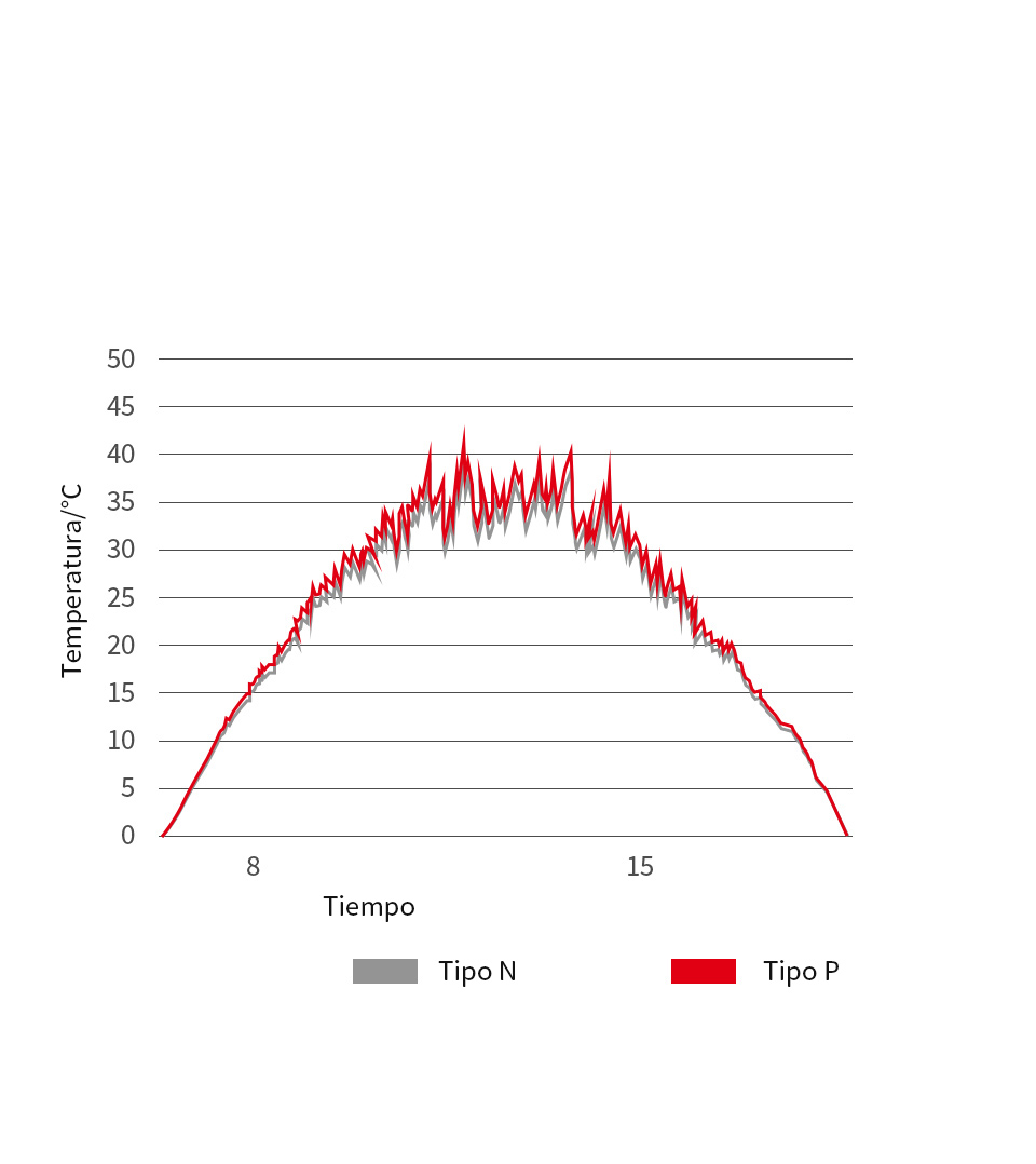 Temperatura de funcionamiento en tiempo real de los componentes N/P