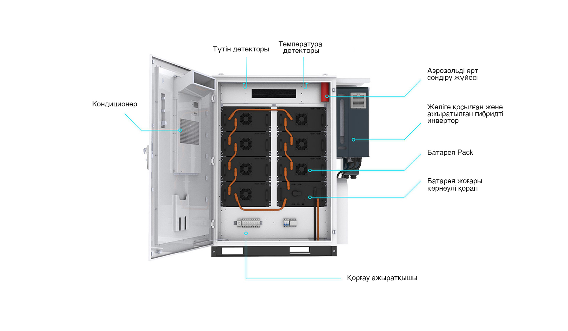 Кобальтсыз темір фосфатты литий (LFP) батареясы, үш деңгейлі өртке қарсы дизайн (PACK+жүйе+шкаф оқшаулау), тәуелсіз реле қорғау, ұяшық деңгейінде жылу мониторингі, бір нүктелік ақауларды физикалық оқшаулау, жүйенің қауіпсіздігін айтарлықтай арттырады.