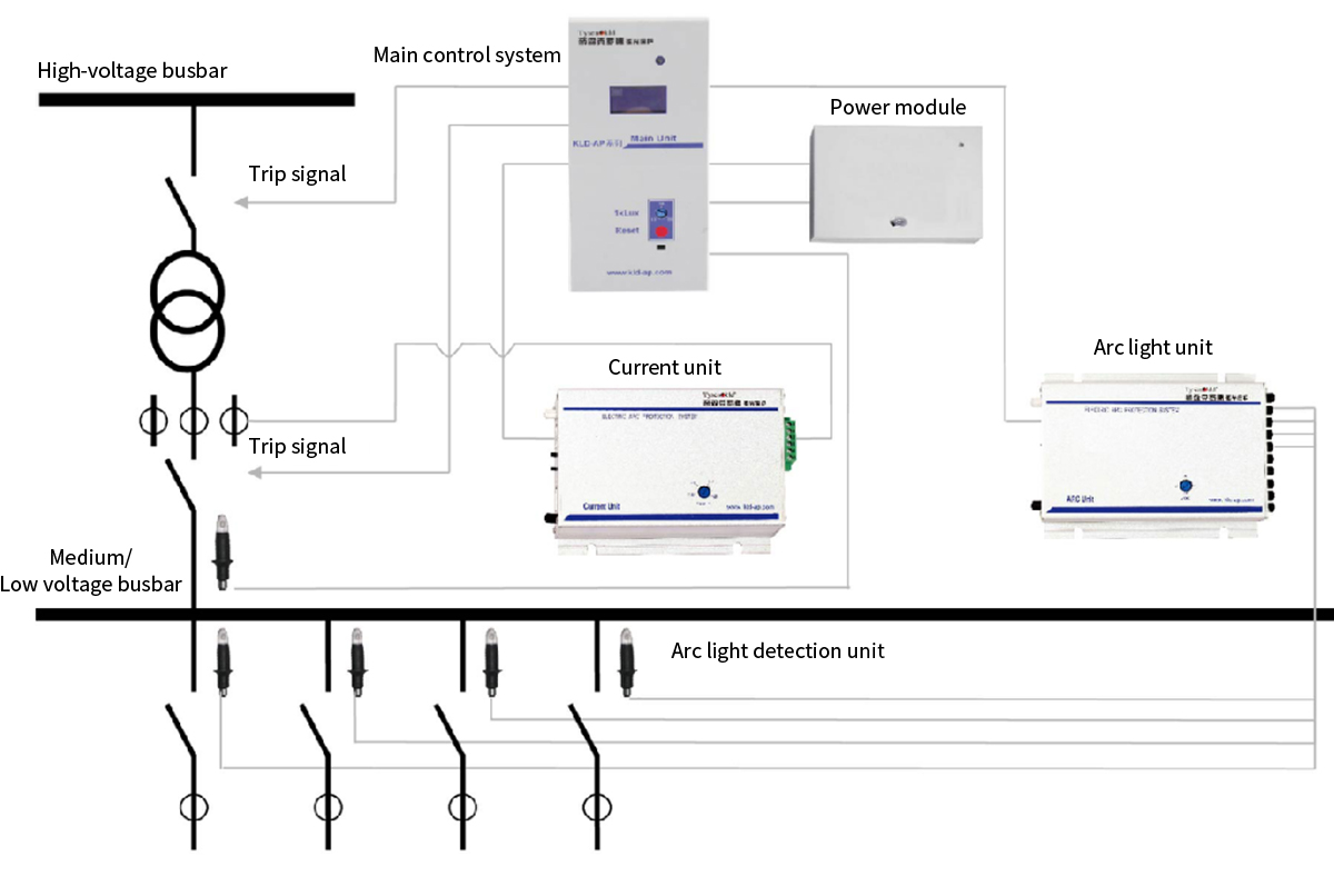 KLD-AP系列弧光保护系统可以通过增加电流单元、弧光单元等模块元件,为整个系统提高性能。通过增加模块的方式满足用户不同的保护需求,可容纳256个监测点。
