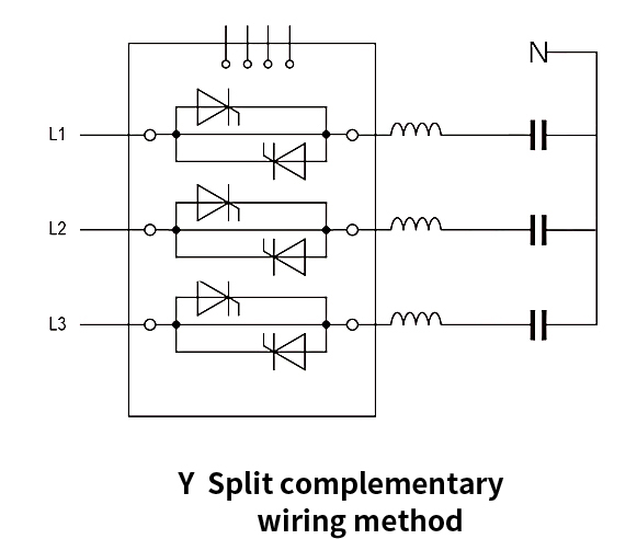 三相晶闸管投切开关采用2控3开关原理,B相不会被转换,单相晶闸管投切开关每一相都可以被单独控制,实现单相补偿。
