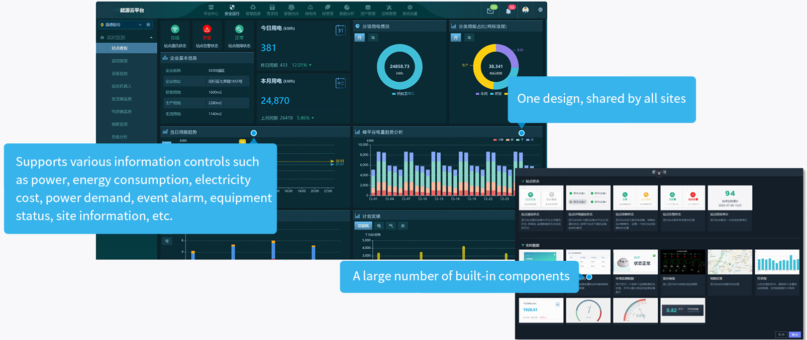 个性化面板设计:客户可通过自行设计功能展示页面,可快速满足客户个性化需求
