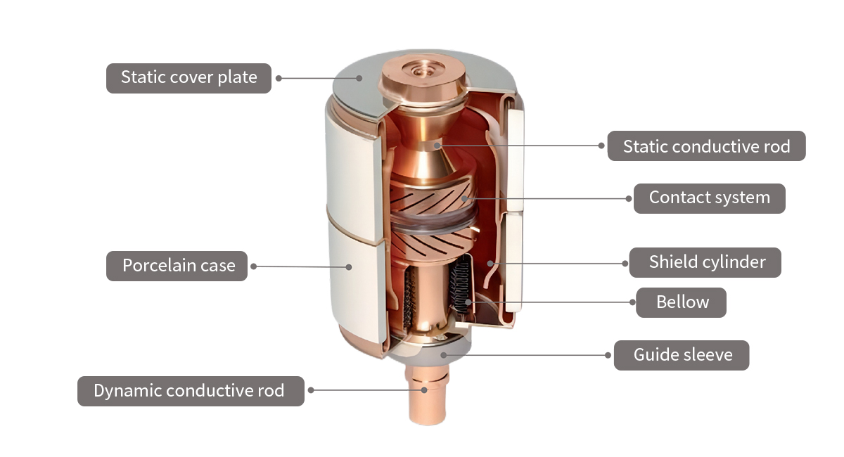 触头材料采用高品质材料,杯状纵磁真空灭弧室触头,截流值低;采用一次封排工艺,介质恢复强度高,低漏气率;机械强度高,机械寿命长;开断绝缘恢复性强,大大降低重燃及TRV 击穿。